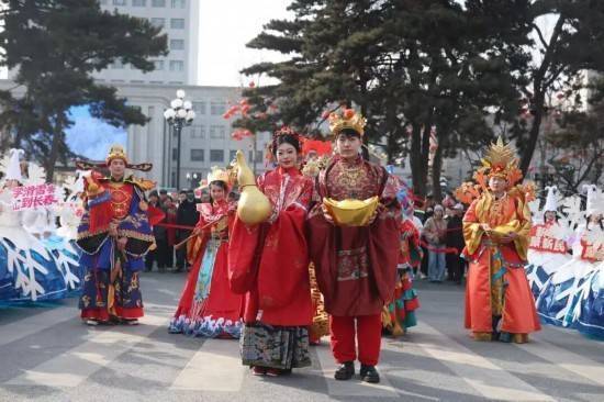 五福巡游:福禄寿喜财NPC与吉林京剧花旦边走边演,40余米的巡游队伍成为流动的民俗风景线;