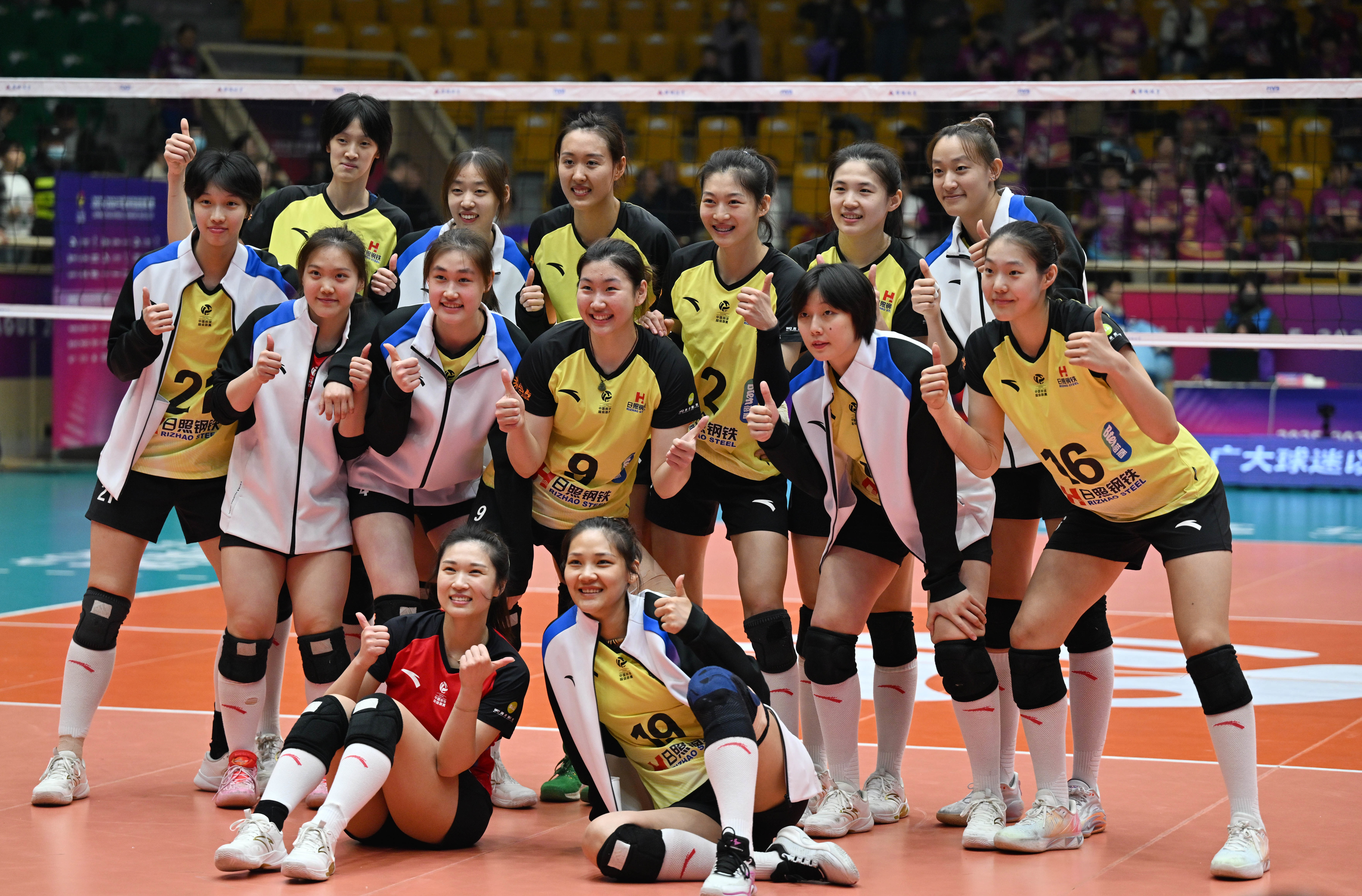 3月25日,山东日照钢铁队球员在赛后合影。新华社记者 赵子硕 摄