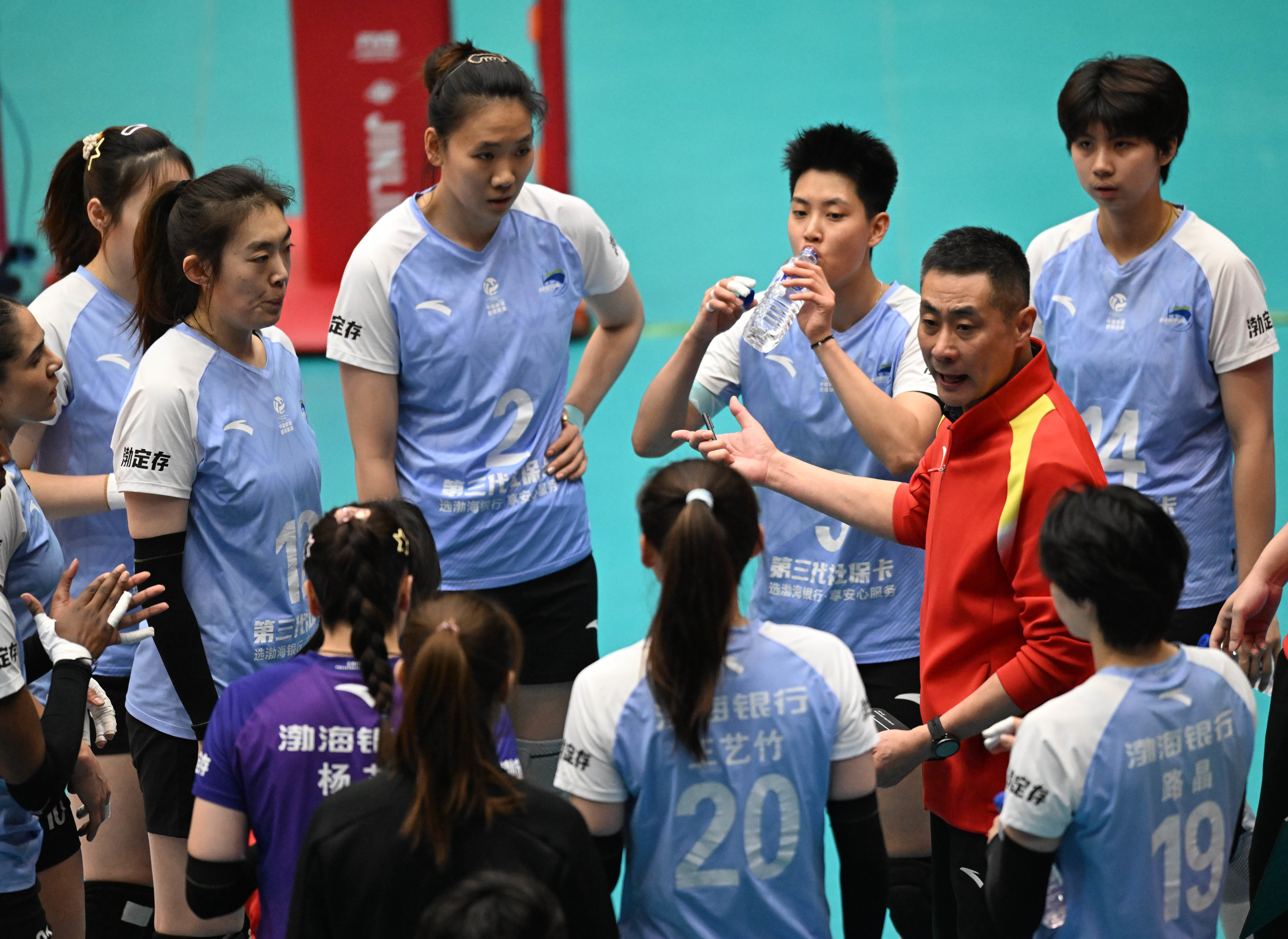 3月25日,天津渤海银行队主教练陈方在场边指导球员。新华社记者 赵子硕 摄