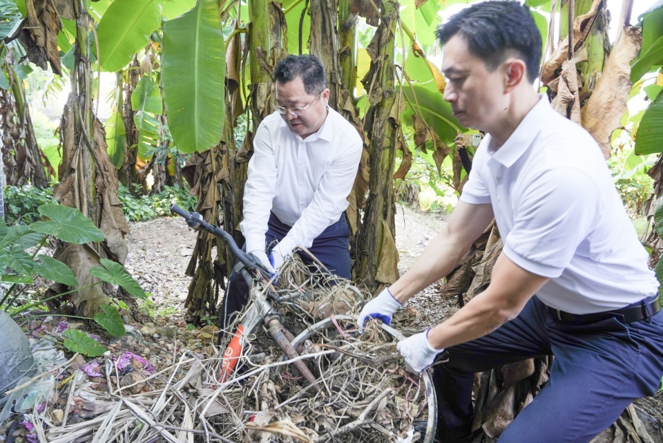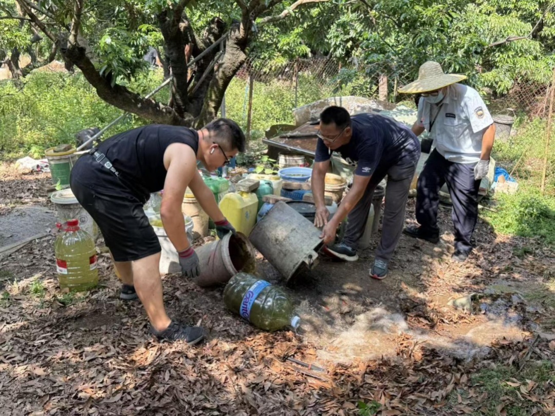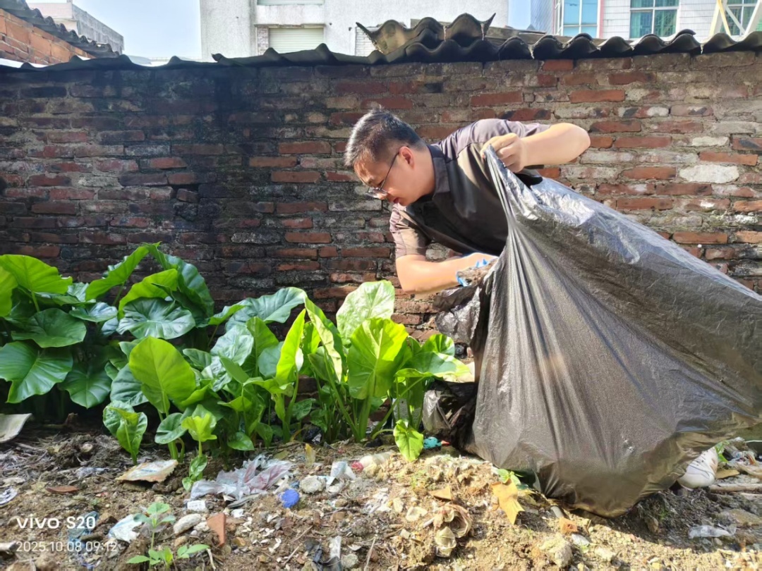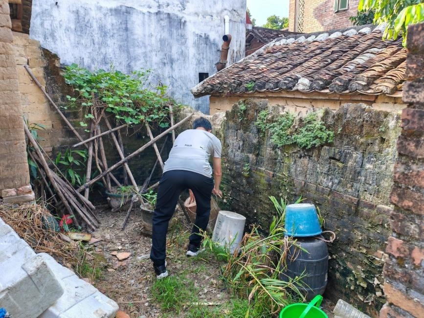 在冲美村主会场,镇党委书记陈智武带头参与,与城管分局工作人员、村委干部、驻村团队、环卫工人及志愿者一起投入清洁行动。大家分工协作,对居民房前屋后、公共菜地等区域进行彻底清扫,翻盆倒罐清除积水,并对蚊虫易孳生区域进行药物喷洒,确保整治到位。
