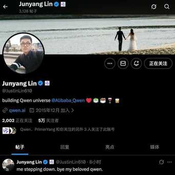 当他在X上说出那句“bye my beloved qwen”,不像是在告别一份工作,而更像是和一件自己参与塑造的作品说再见。
